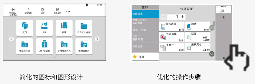 新机型标配7英寸彩色触摸屏,并采用全新的操作面板设计,优化按键布局。操作面板支持角度调节,用户可根据使用需求调节面板角度。