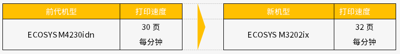 ECOSYS MZ3202ix是ECOSYS M4230idn的后继机型,具备每分钟32页的黑白输出能力,标配7英寸彩色触摸屏,支持复印、打印、彩色扫描并且支持有线网络,可以网络打印和扫描。此外,该机型还可以选购无线网卡,更适用于现代办公应用环境。该产品适合20人以内,平均月印量为10,000页及以下的中小型工作组使用。